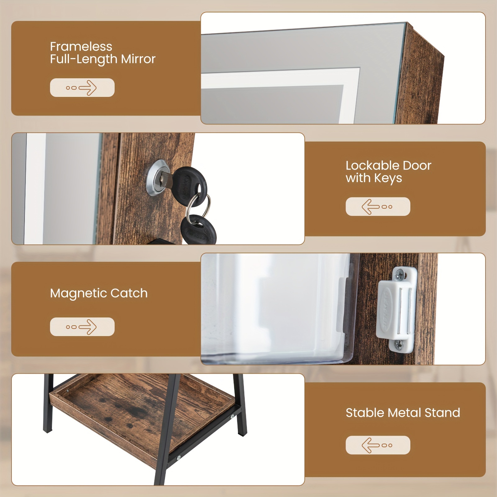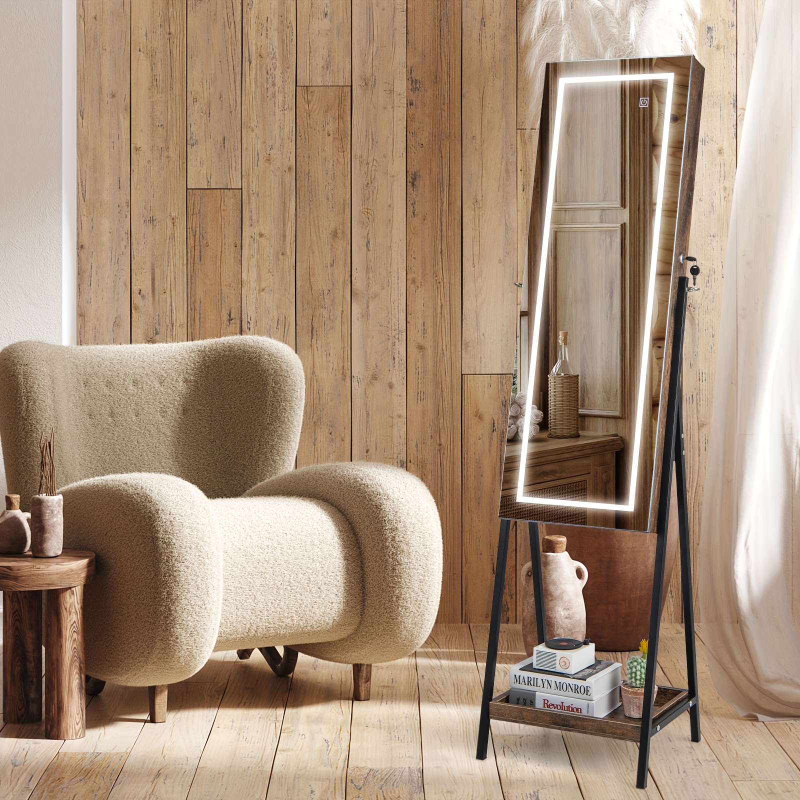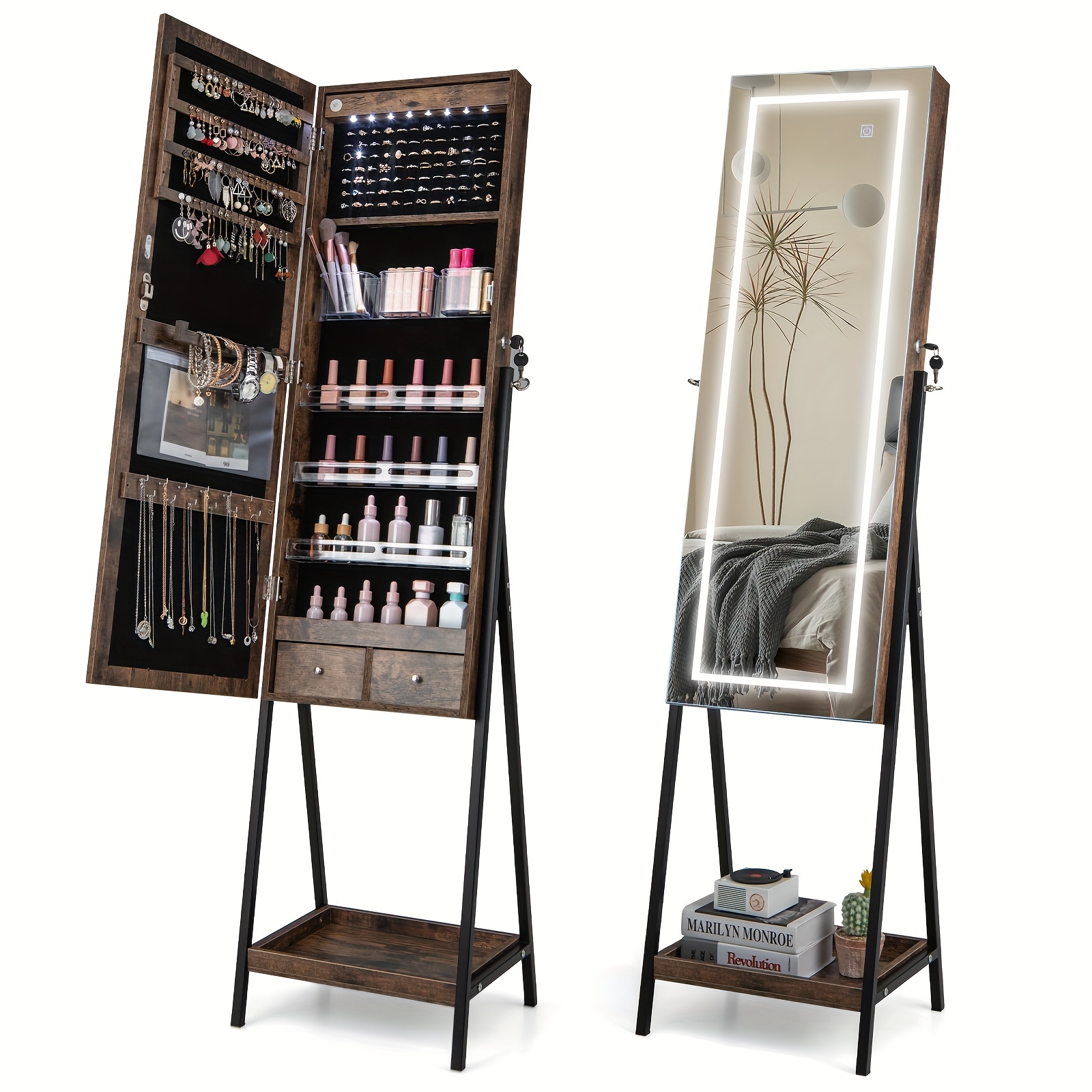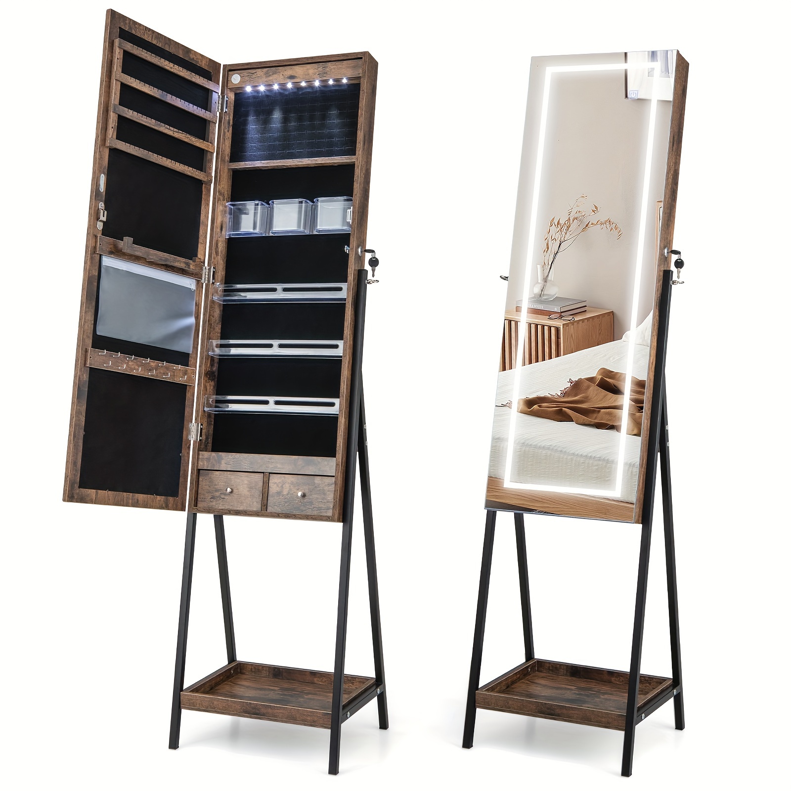SPECIFICATIONSBrand: COSTWAYItem ID: GV83472Material: IronOperating Voltage: ≤36VPower Mode: Battery Powered3-Color LED Mirror Jewelry Cabinet Jewelry Organizer Armoire W/ Built-in LigSKU: 11365513$199.99Pricecolor*Rustic BrownQuantity*Add to Cart