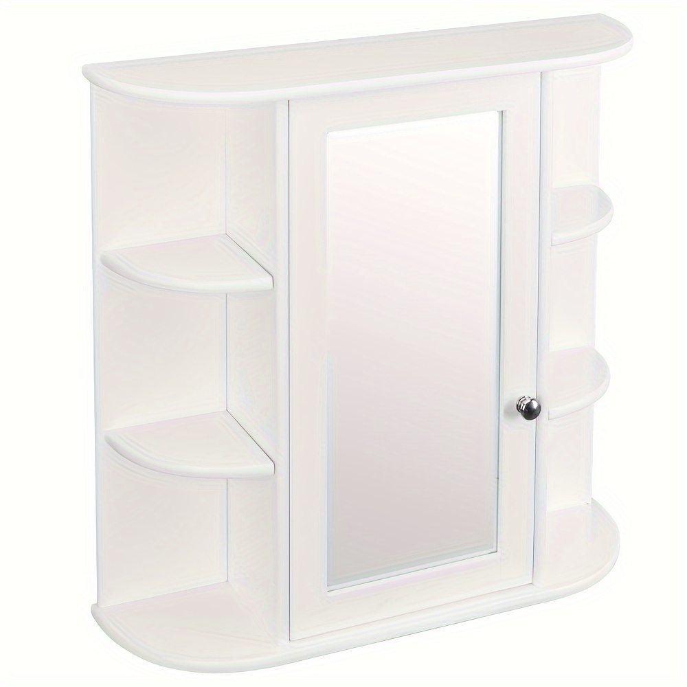 3-tier Single Door Mirror Indoor Hotel Bathroom Wall Mounted Cabinet Shelf White