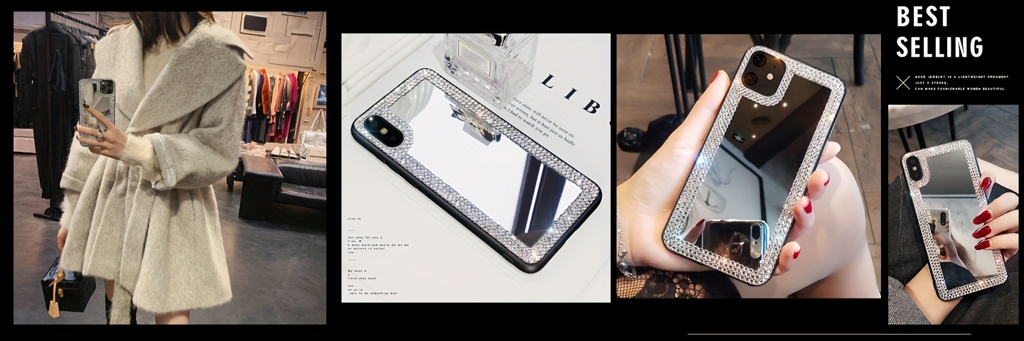 Fashionable, Luxurious, Minimalist Rhinestone Electroplated Makeup Mirror Phone