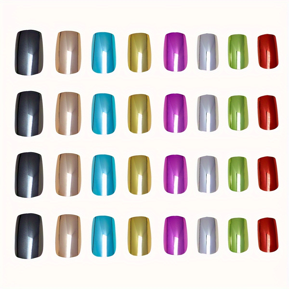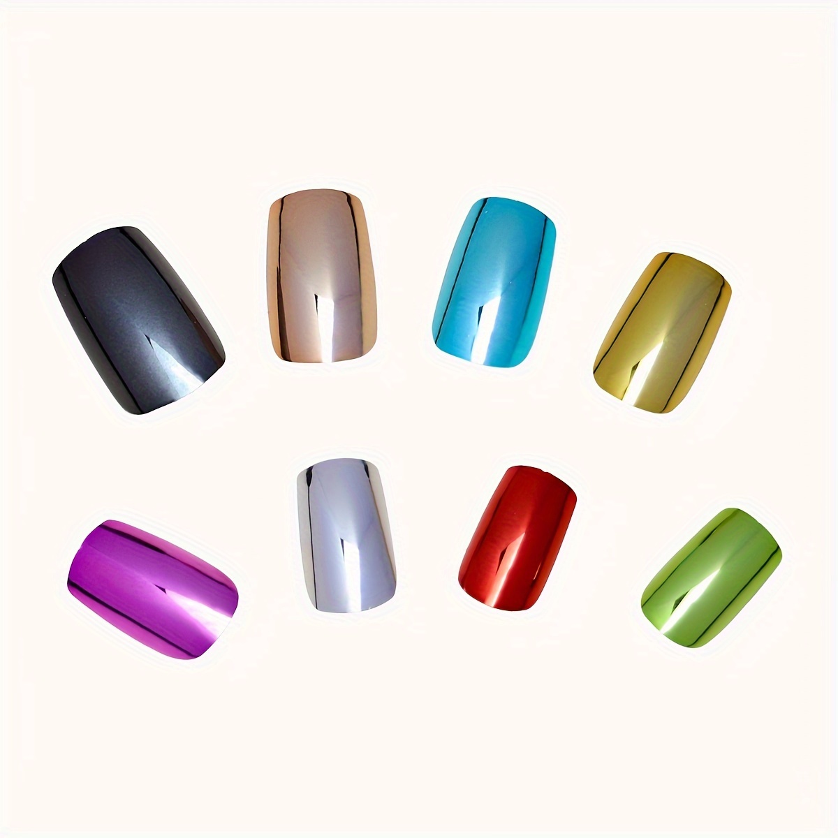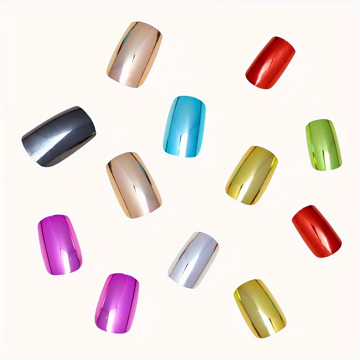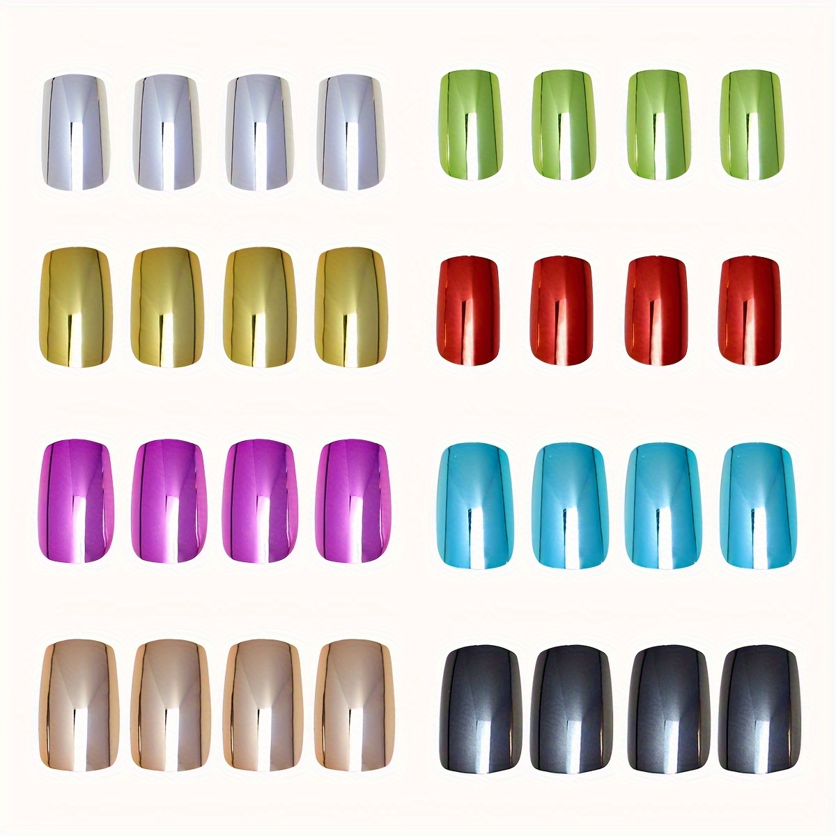 Skwoval Press-On Fake Nails with a Rectangular Metallic Mirror Finish, Y2K Chrom